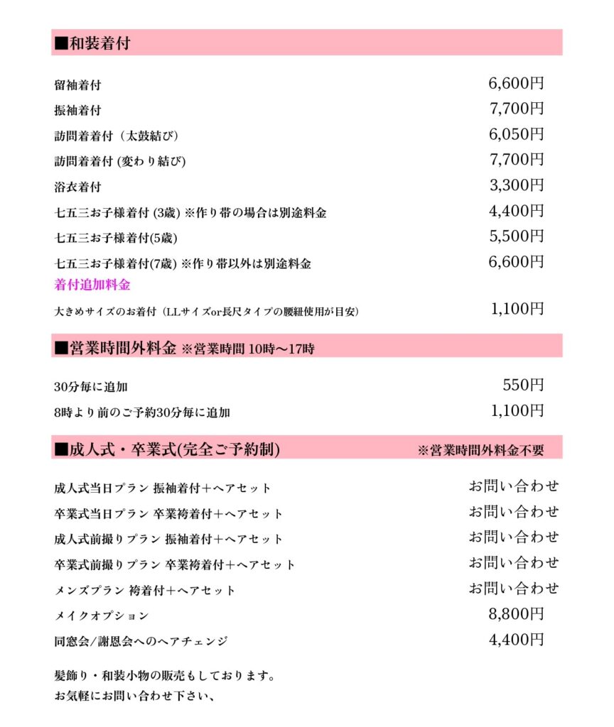 着付け・ヘアセット・メイクができるプライベートサロン