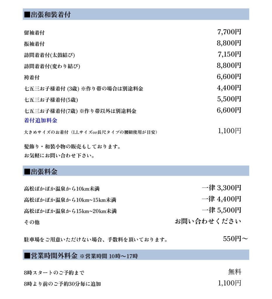 お着物などの荷物の移動もなくお子様がいらっしゃるご家庭に大変好評頂いております。